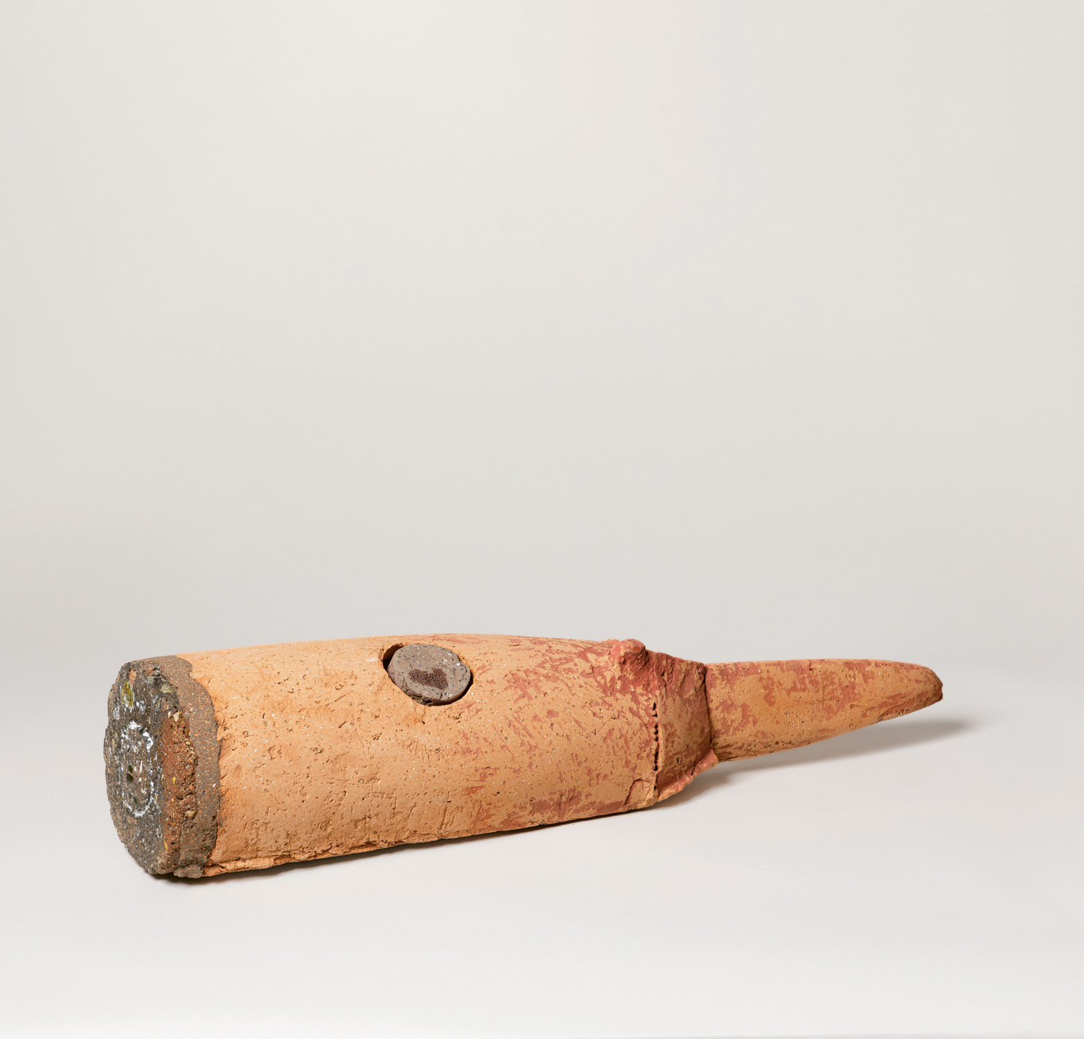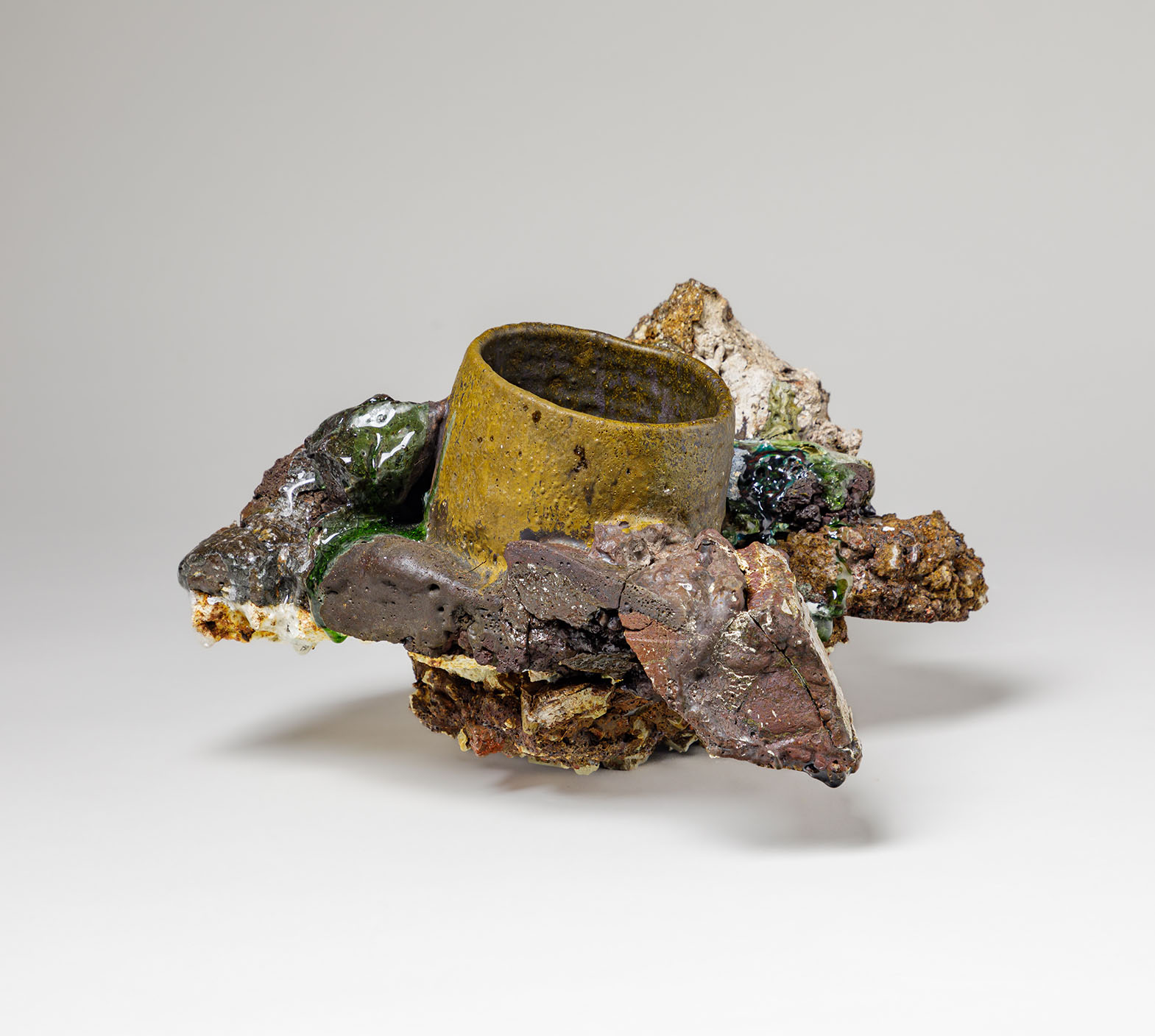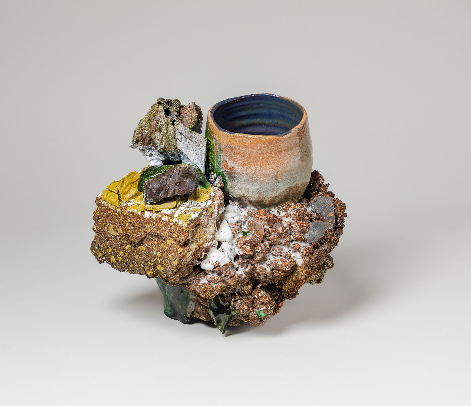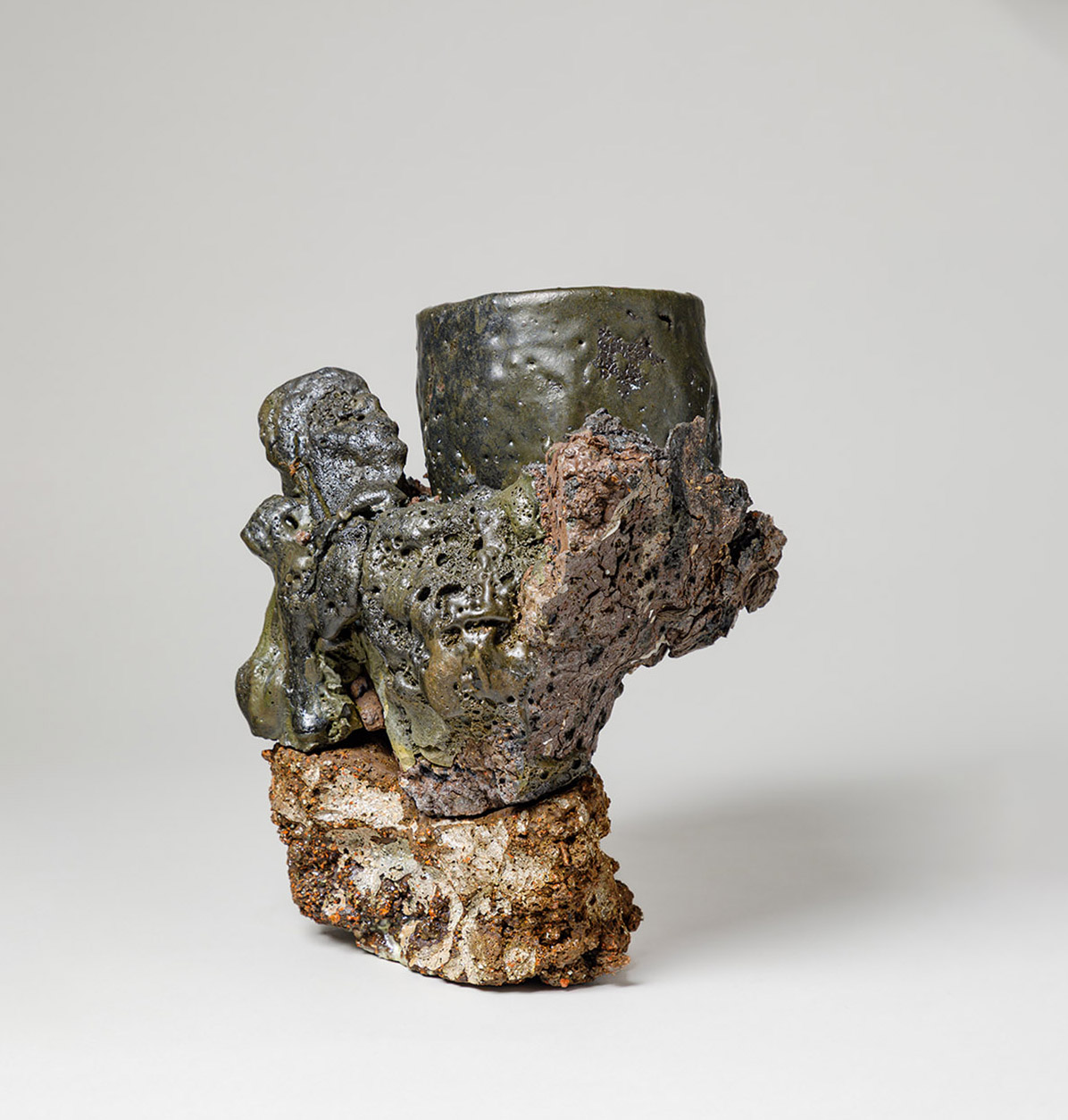 Depuis 1990, Camille Virot associe à la terre d’autres matériaux. L’artiste reste cependant fidèle à son travail ancien, « le rafraîchissant et l’accommodant à son langage d’aujourd’hui« , comme il l’évoque lui-même. Virot se permet tout ou presque, et ses œuvres oscillent magnifiquement entre « la pierre et la chair », le monde minéral enfoui qui leur donne forme, et ce qui les relie au monde des vivants, objets qui sont aussi et souvent, à l’origine, des réponses à des besoins de vie.