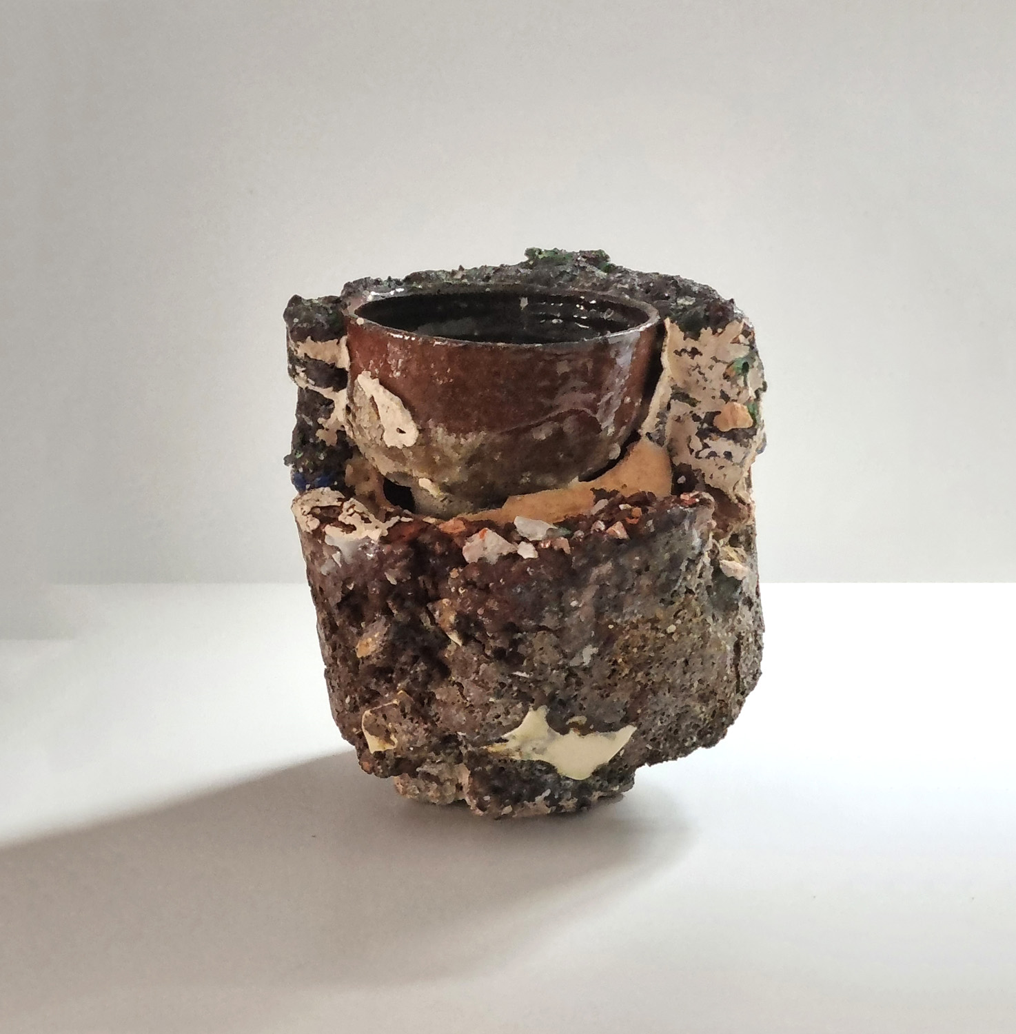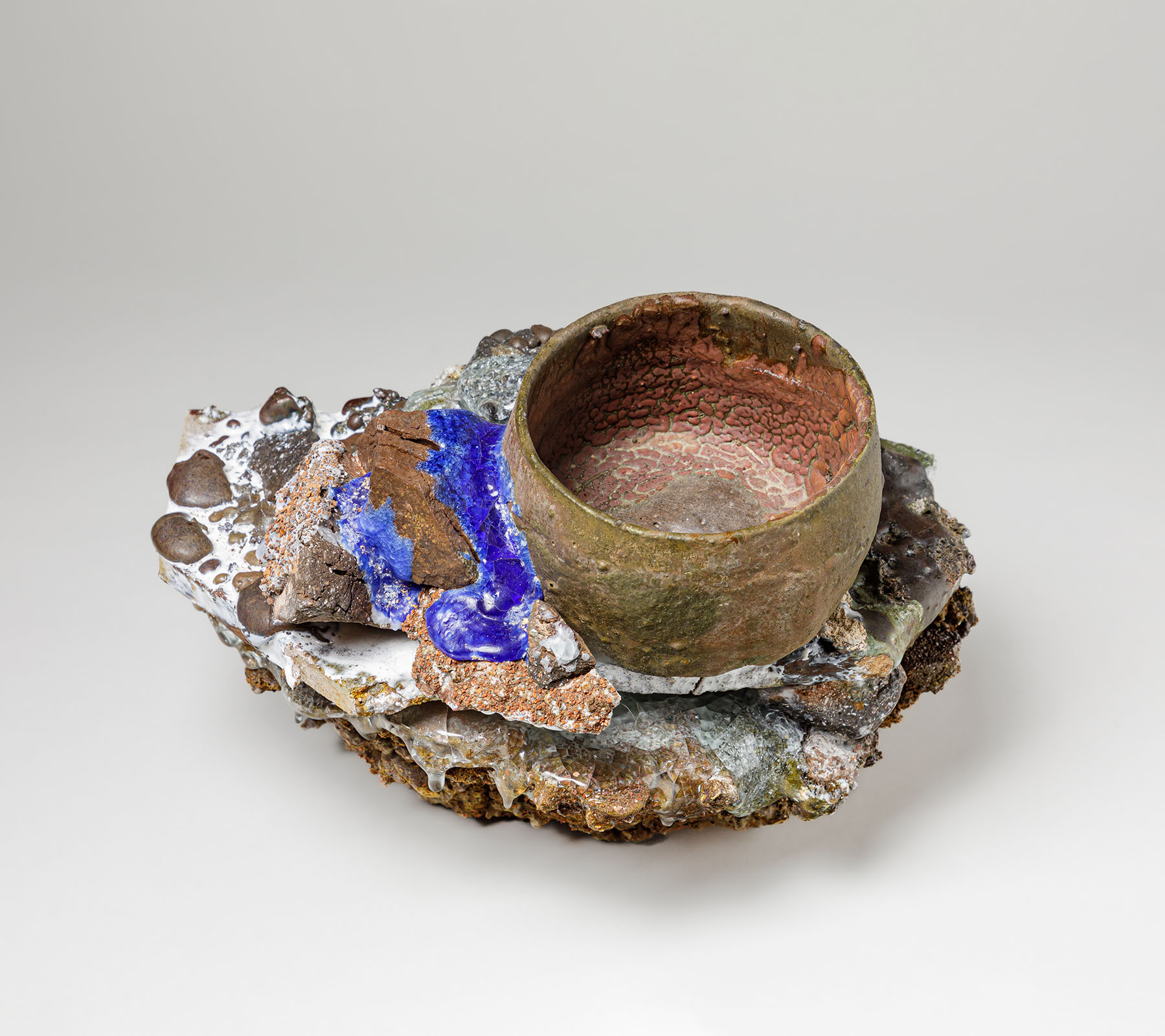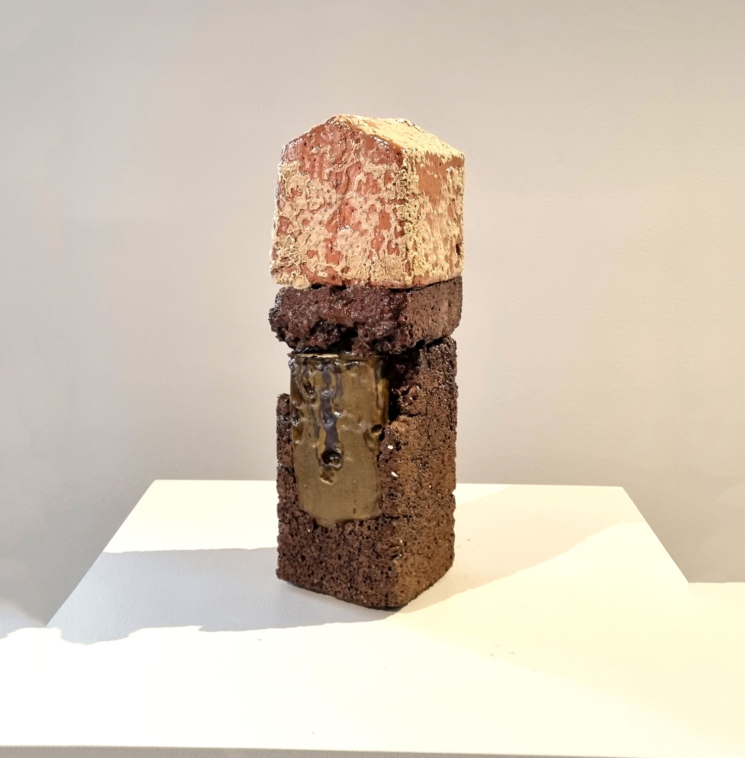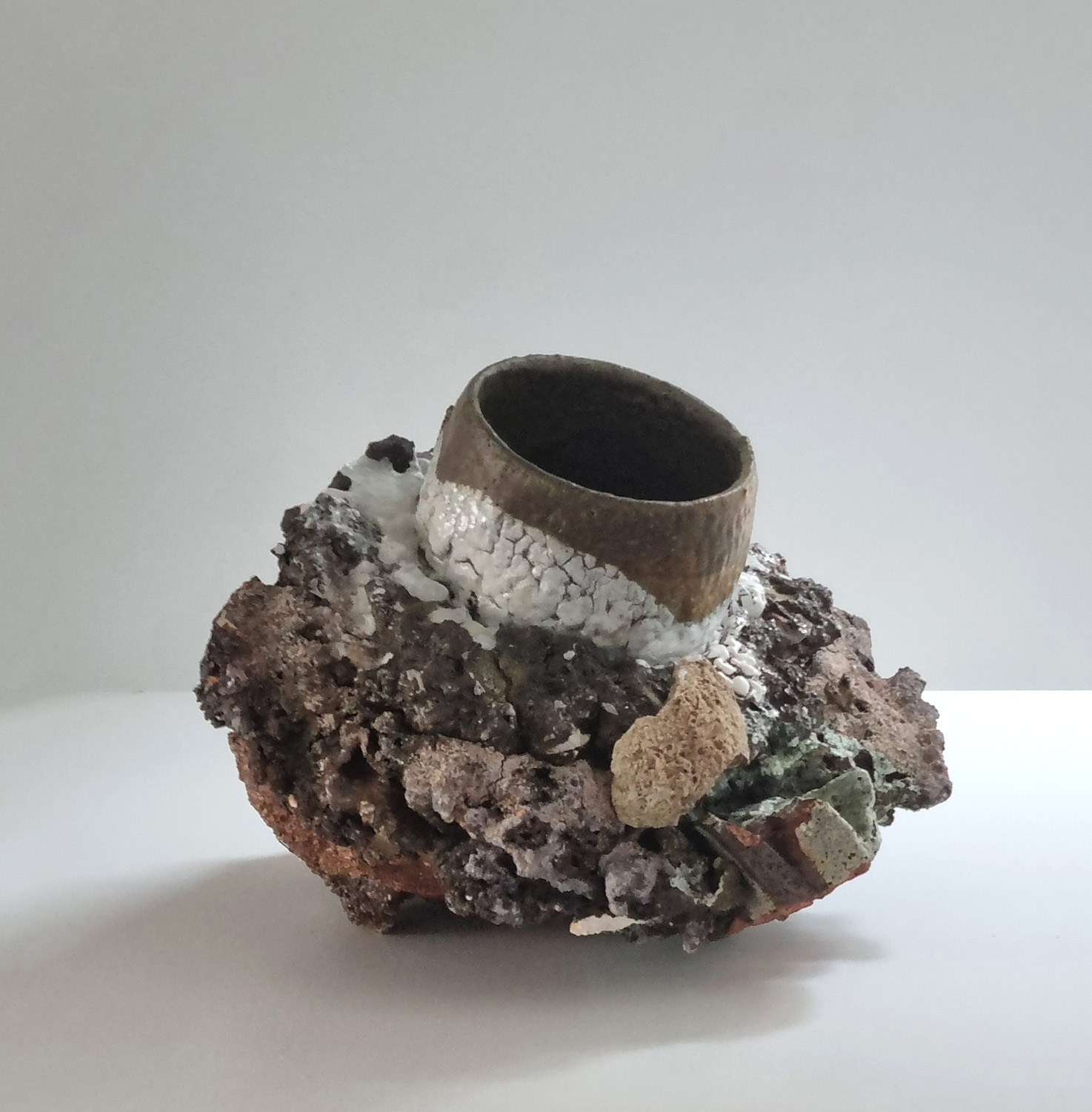 Depuis 1990, Camille Virot associe à la terre d’autres matériaux. L’artiste reste cependant fidèle à son travail ancien, « le rafraîchissant et l’accommodant à son langage d’aujourd’hui« , comme il l’évoque lui-même. Virot se permet tout ou presque, et ses œuvres oscillent magnifiquement entre « la pierre et la chair », le monde minéral enfoui qui leur donne forme, et ce qui les relie au monde des vivants, objets qui sont aussi et souvent, à l’origine, des réponses à des besoins de vie.