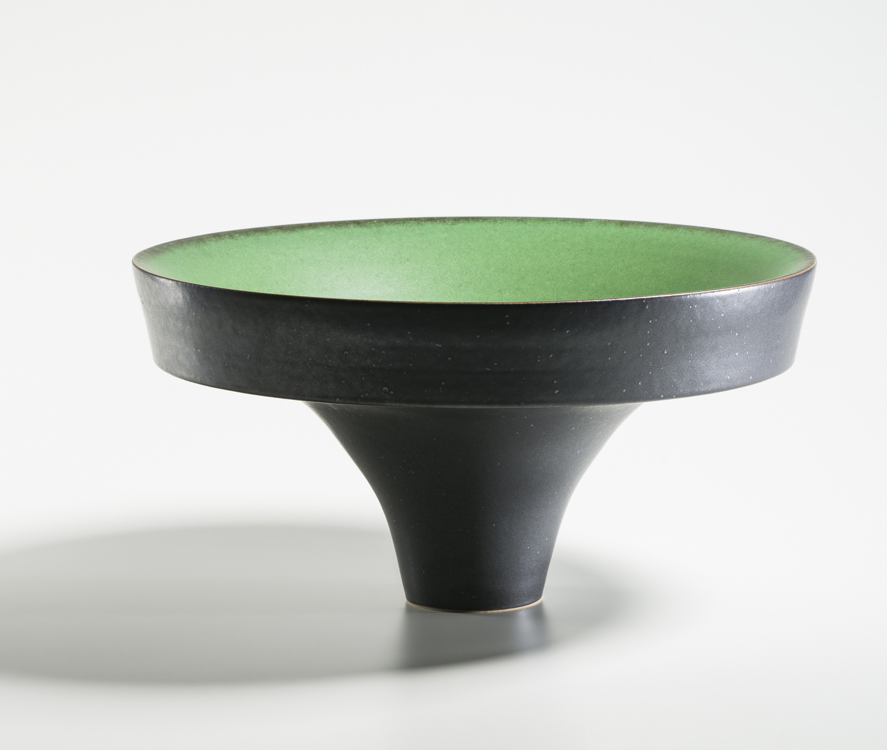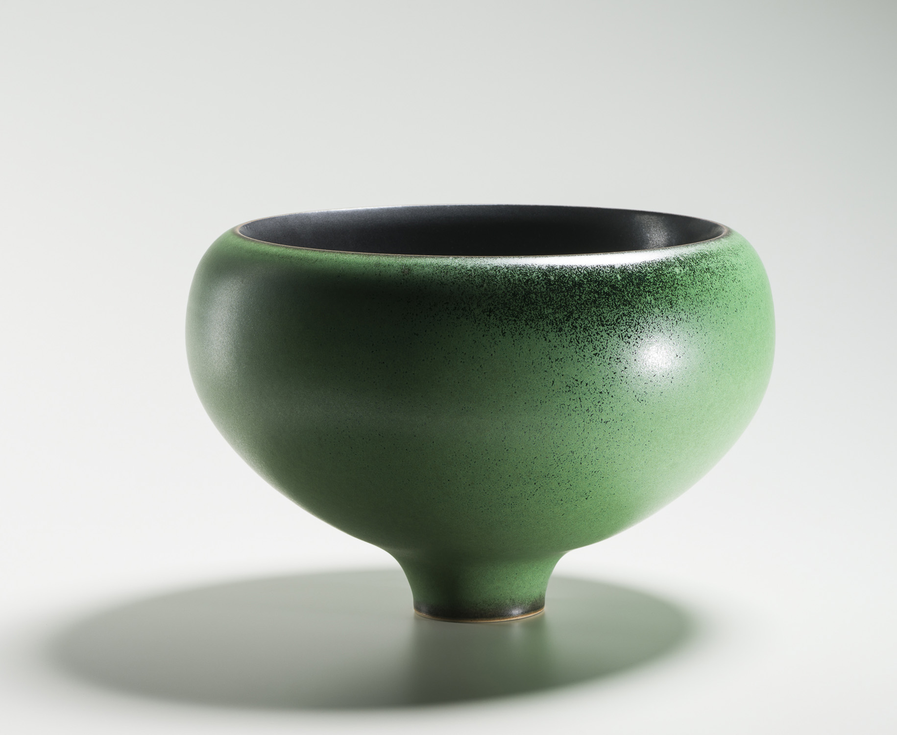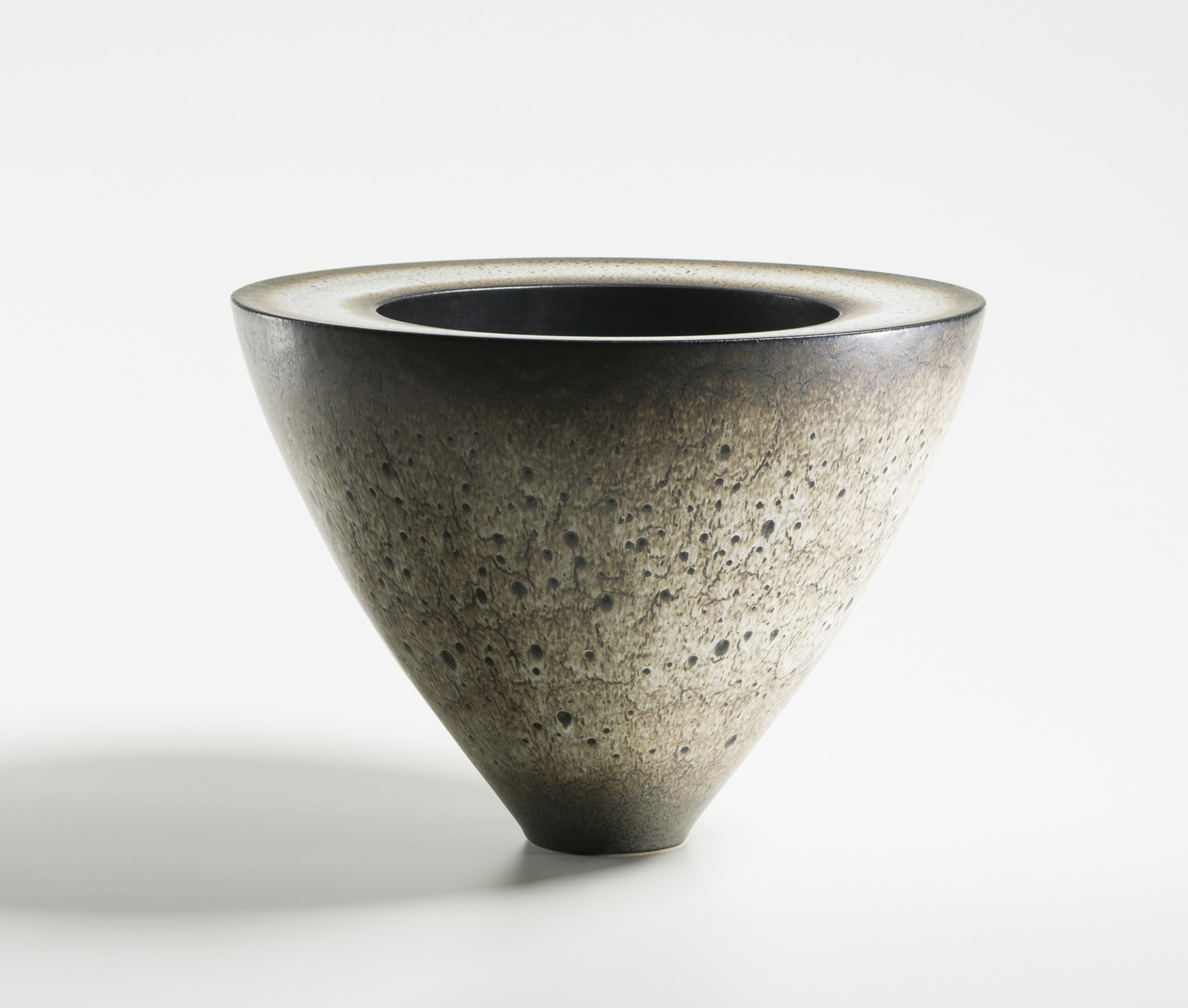 « Ce qui intéresse Bohle, ce sont les constructions à double paroi dont la forme intérieure se distingue de la forme extérieure dans un contraste prononcé. En outre, elles se démarquent très souvent l’une de l’autre par leurs couleurs. La configuration formelle est conçue de manière à ce que les glaçures coulent sur les parois verticales et forment des gouttes sur le bord inférieur. Une cuisson en réduction à 1280° sous une flamme directe dans un four à gaz permet aux émaux « sang de bœuf » et céladon de déployer toute leur solennelle beauté. […]