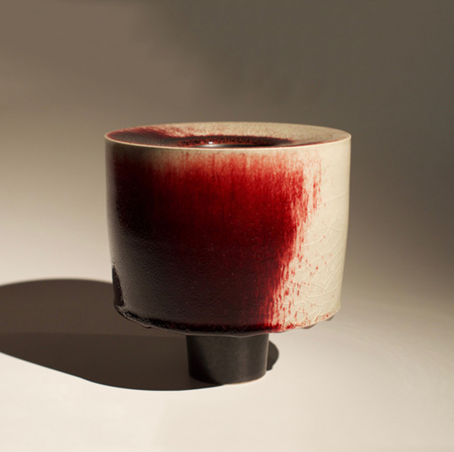 Les formes emblématiques de Thomas Bohle sont ici présentes à travers ses célèbres « Mushroom Forms » et ses tout aussi célèbres coupes sur pied dont la construction à double-paroi permet à l’artiste de composer un contraste de couleur entre les émaux brillants et lumineux d’une part, et l’émail noir et mat, d’autre part. Thomas Bohle se concentre sur la relation entre la forme et la couleur et il en résulte un dialogue passionnant entre les formes, aux proportions élégantes, et les émaux époustouflants, qui transcendent les lignes géométriques strictes. Parallèlement, la perfection technique qu’il affiche n’est pas simplement quelque chose de statique qui peut être tenu pour acquis, mais bien plus l’expression d’une volonté de dépassement constante.
