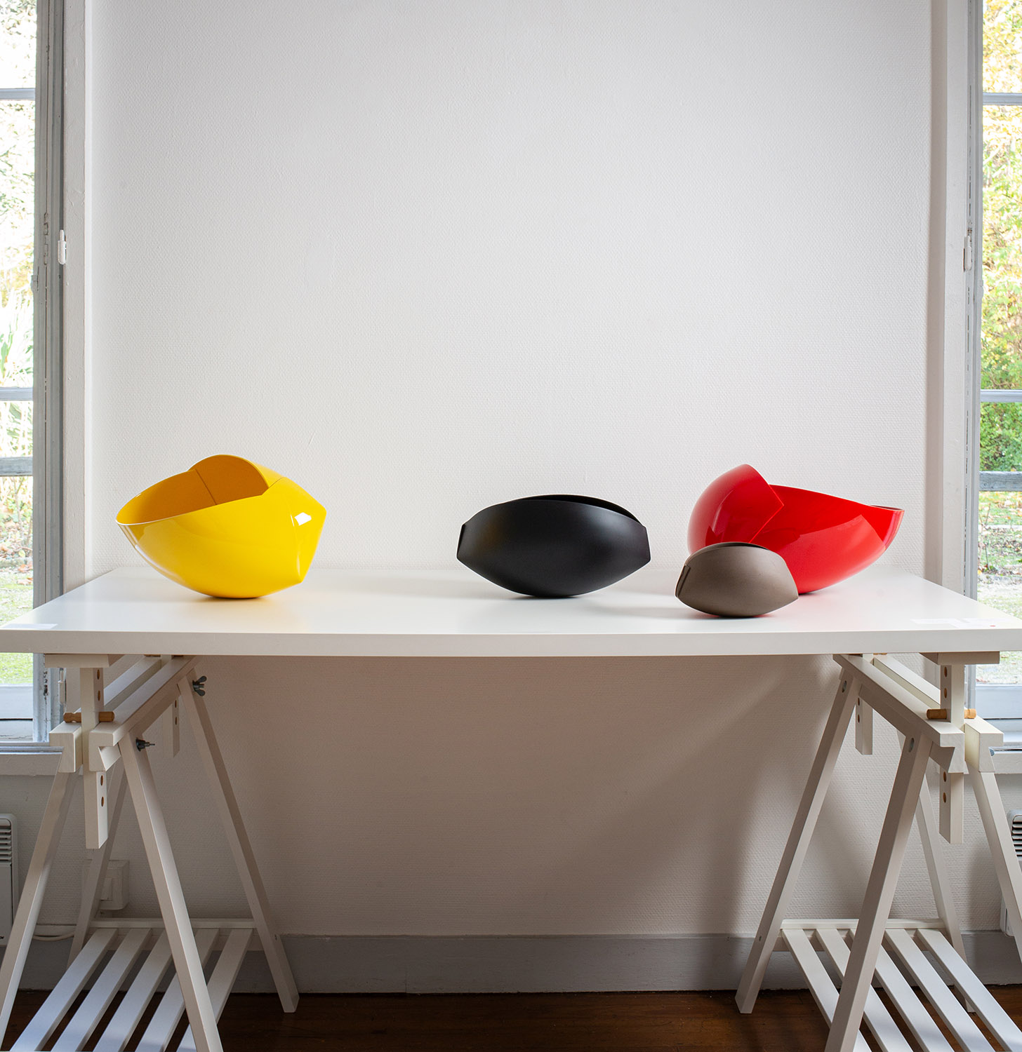 La Maison des Arts a souhaité mettre en valeur le travail de quatre céramistes, de générations et d’origines géographiques différentes, qui témoignent chacune d’une maîtrise spécifique transcendant le matériau. Si certaines produisent des pièces rappelant les formes utilitaires et s’inscrivent dans une tradition potière, d’autres s’en détachent totalement.