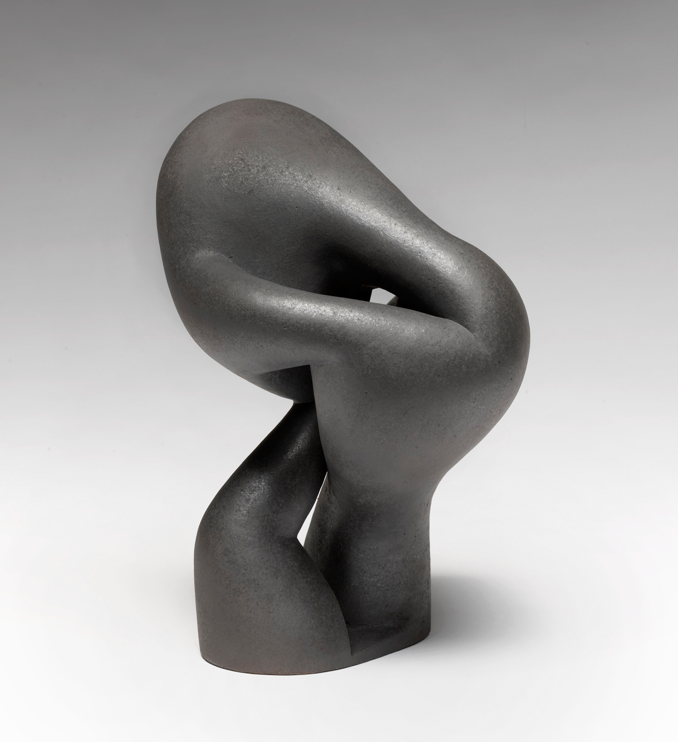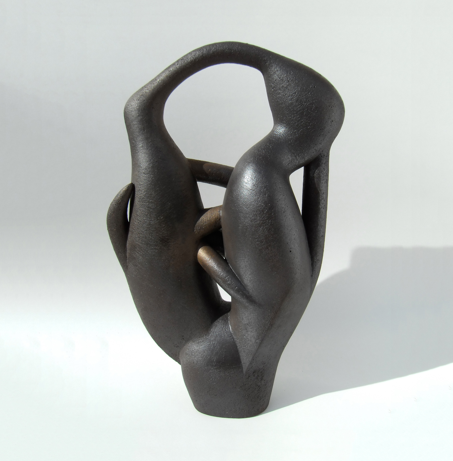 Pierre Martinon – « La belle Anthracite au miroir de cuivre », sculpture terre cuite, H. 15 x 28 x 22 cm.