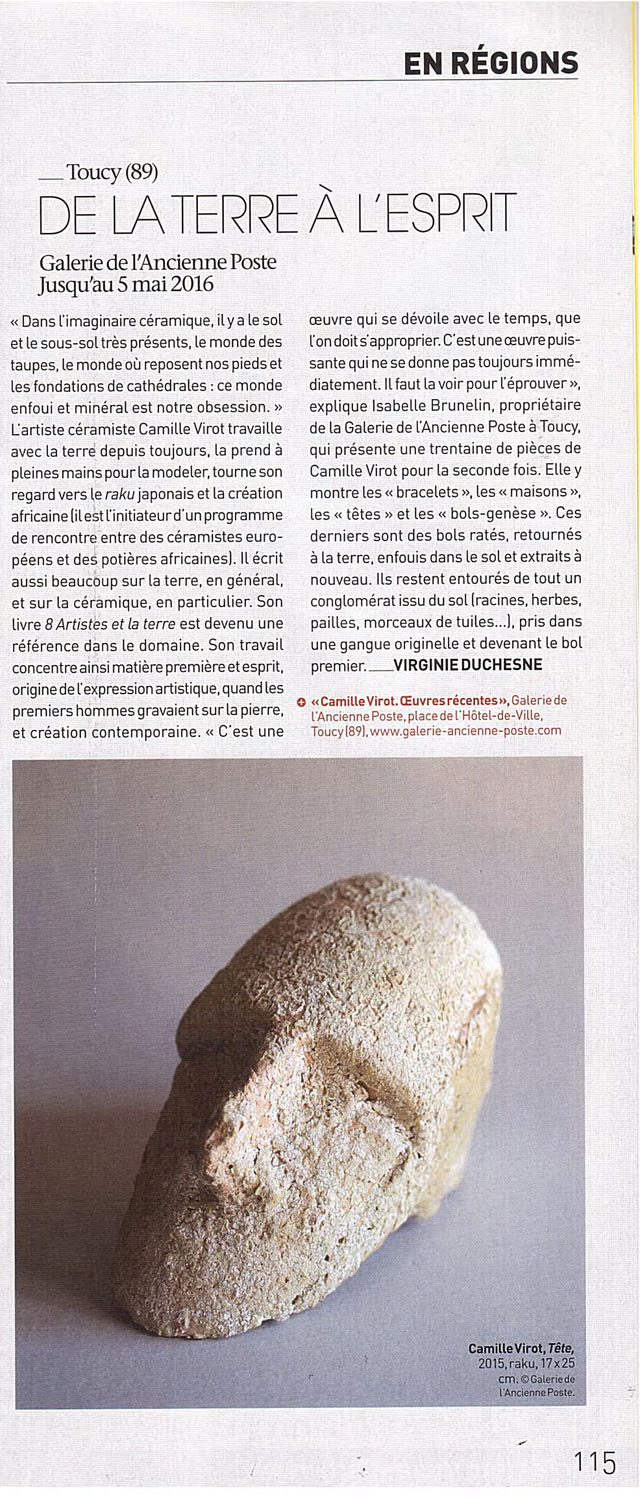 Camille Virot « de la terre à l’esprit » dans L’Œil en avril 2016